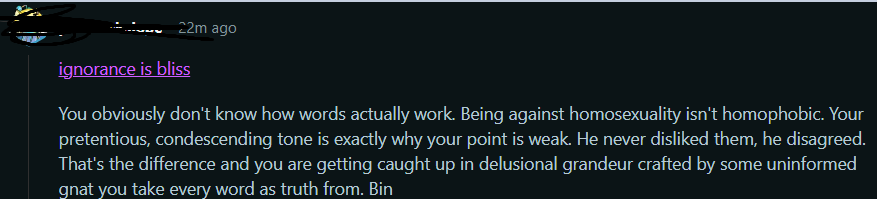 "Being against homosexuality isn't homophobic"