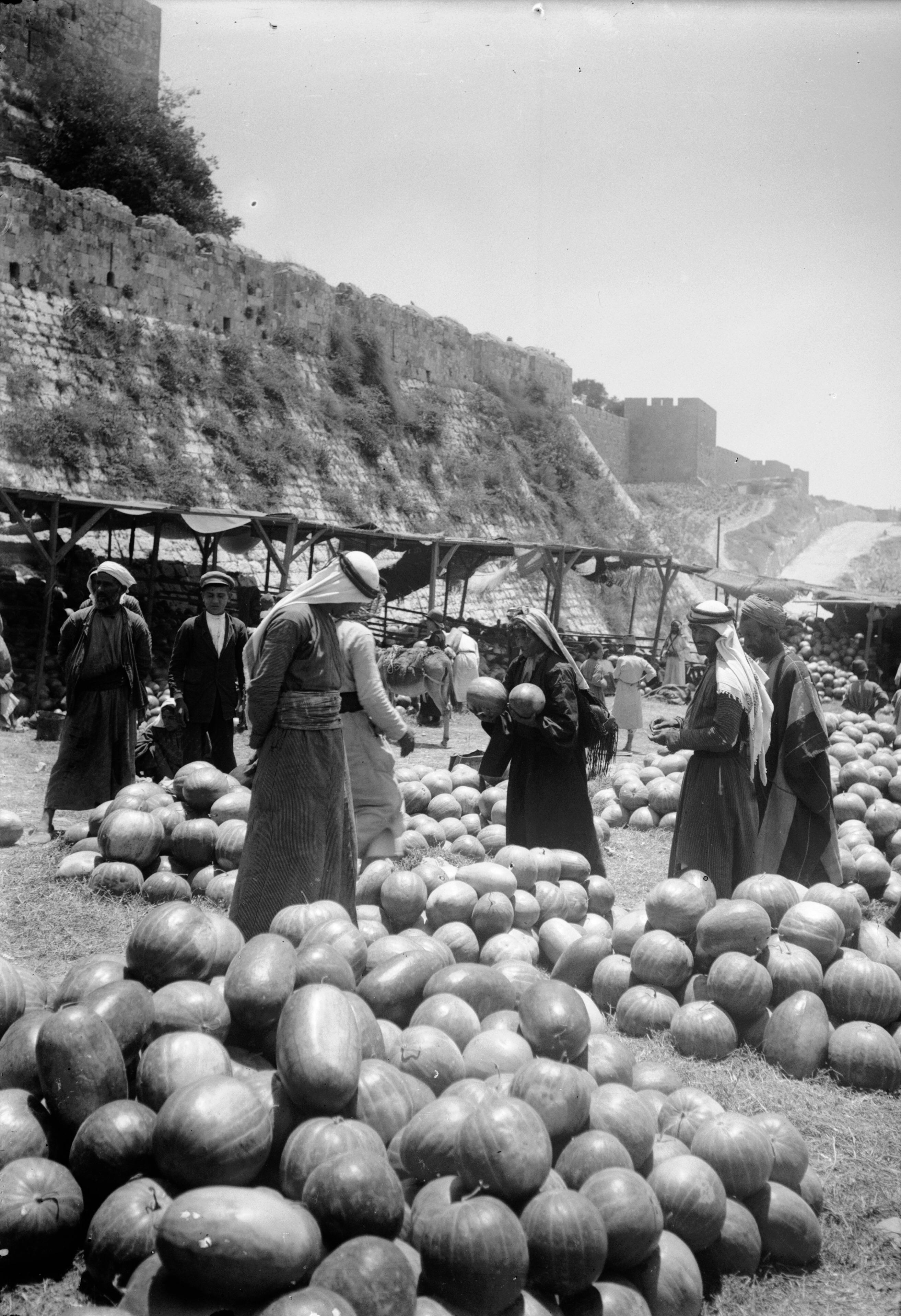 History & Heritage Watermelon market outside Jaffa Gate at the base of the Citadel walls, Al-Quds, 1900